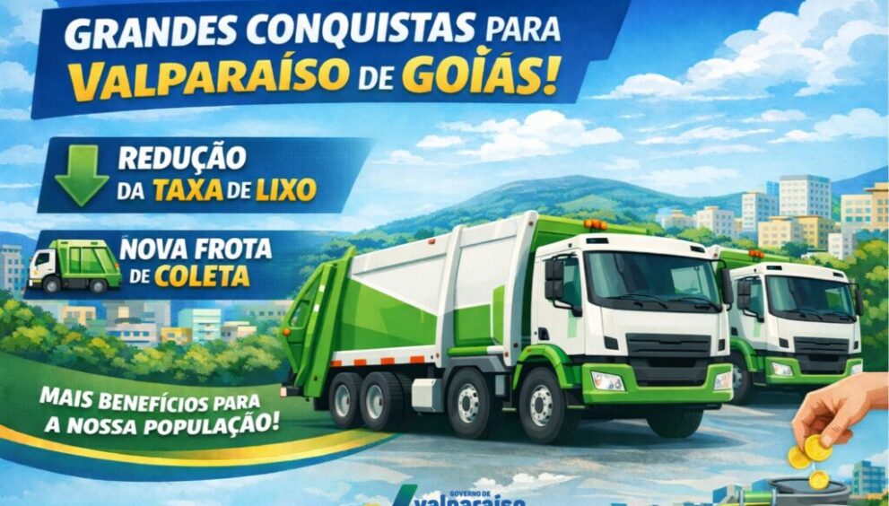 A Prefeitura de Valparaíso de Goiás anunciou duas importantes conquistas para a população: a redução do valor da taxa de coleta de resíduos sólidos e o encaminhamento da licitação para implantação de um novo e moderno sistema de coleta de lixo e limpeza urbana no município.